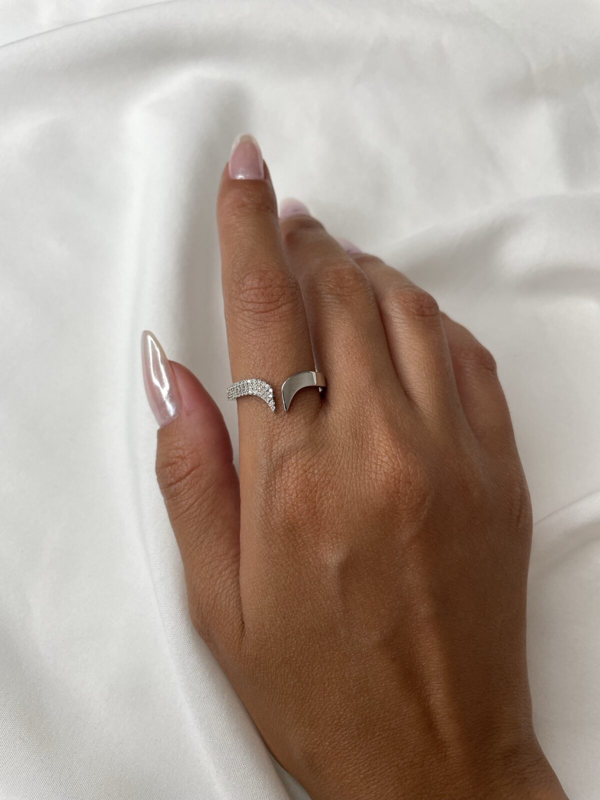 עשויה כסף אמיתי 925, פתוחה ומשובצת בחציה העליון באבני זירקוניה עדינות.