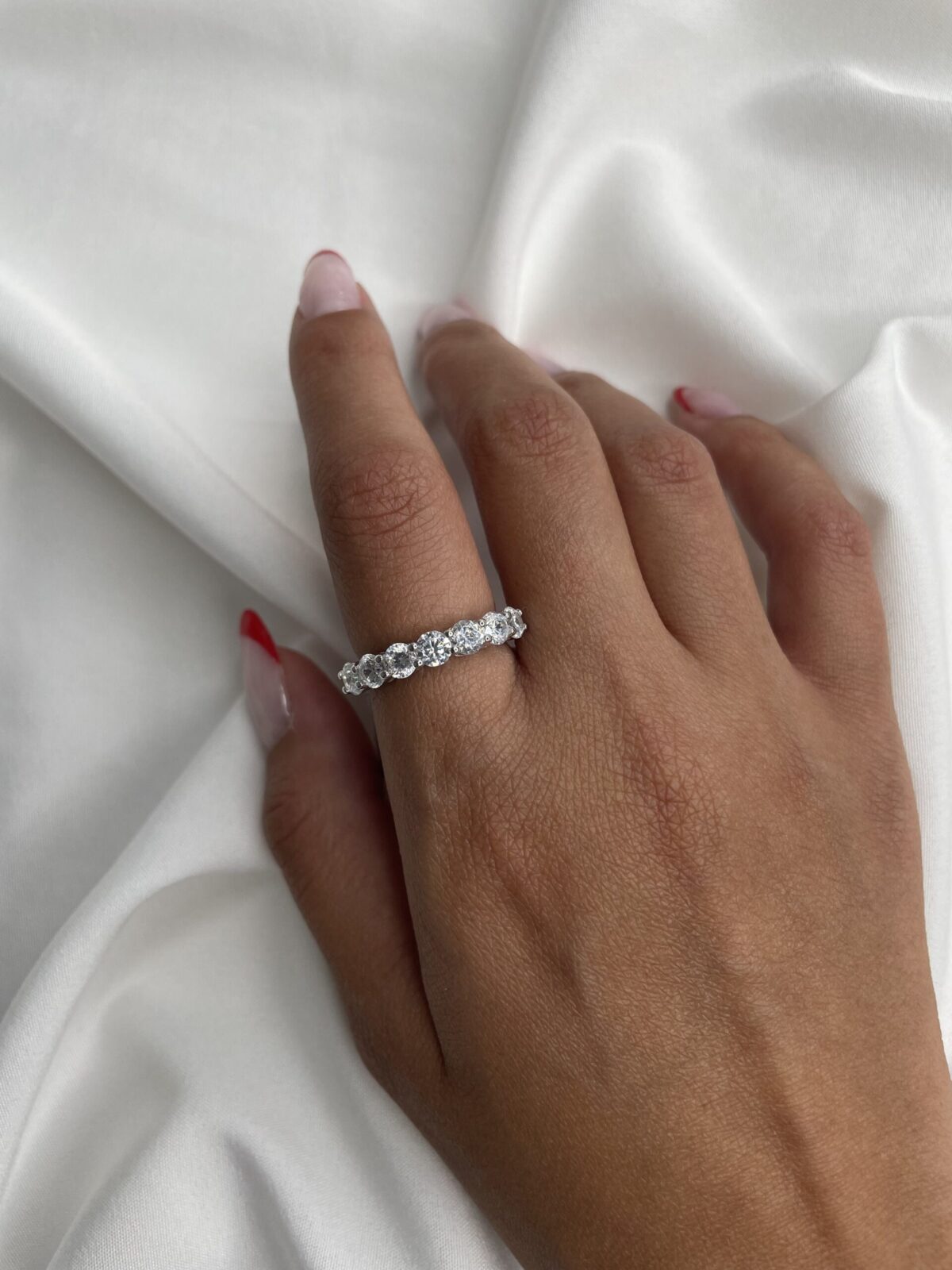 טבעת העשויה כסף אמיתי 925, משובצת אבני סברובסקי בגדול של כ-5 מ"מ כל אחת.