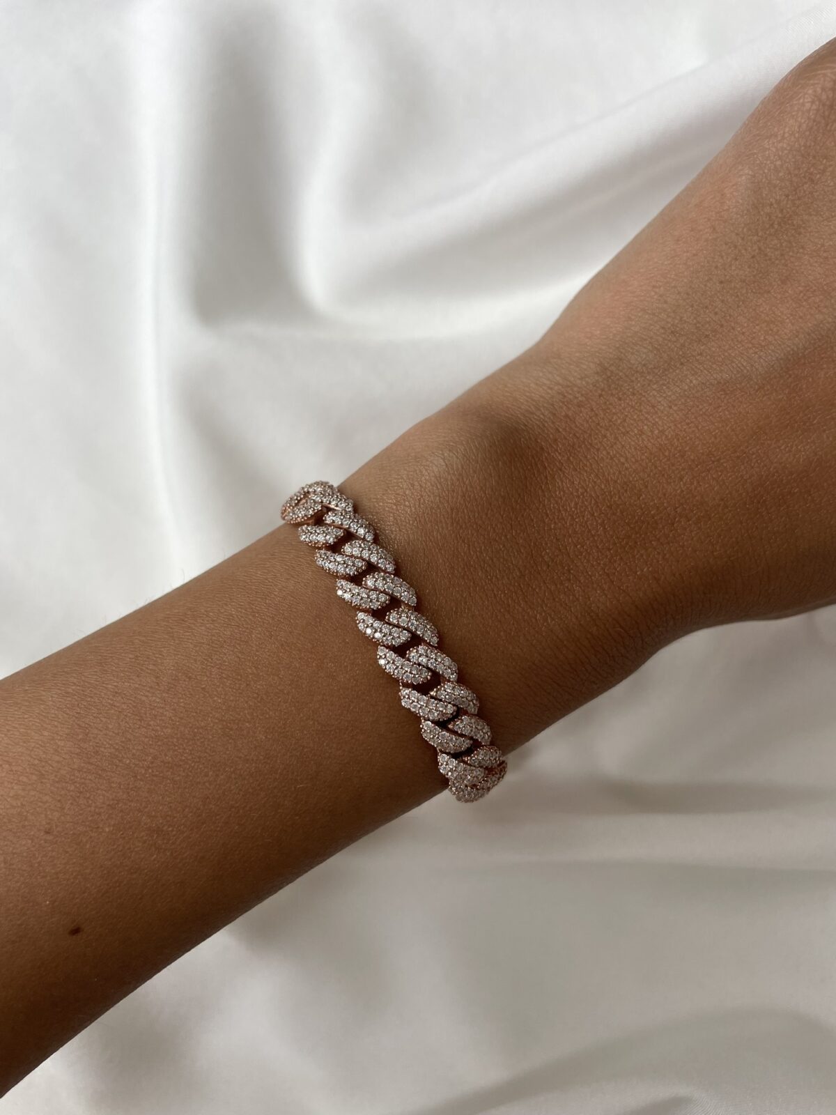 עשוי כסף אמיתי 925, ציפוי רוזגולד 14K, שיבוץ אבני זירקוניה.